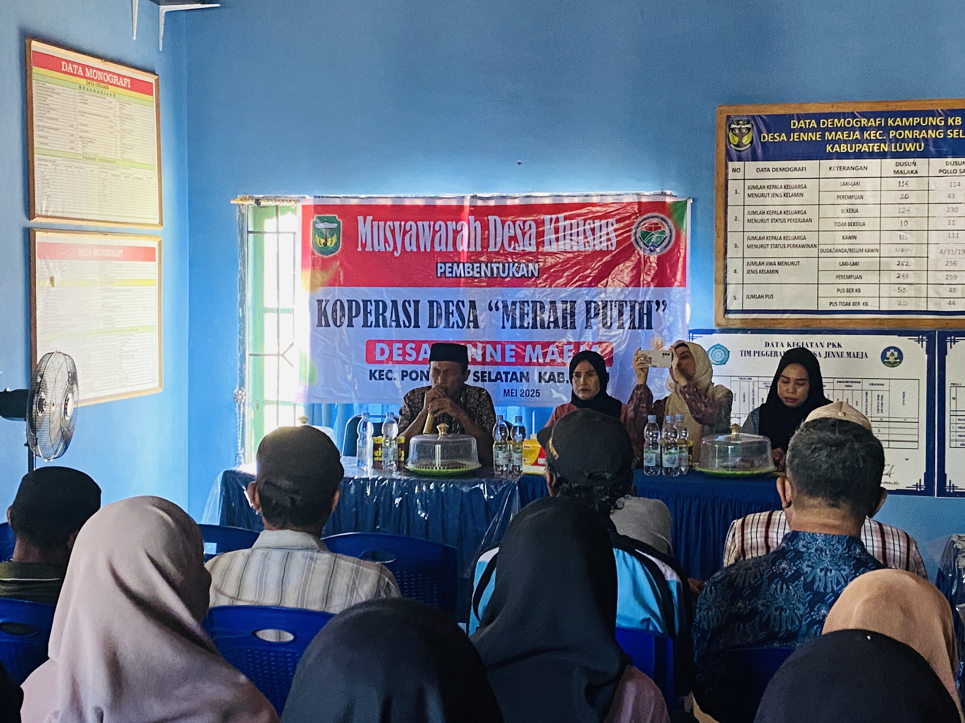 Desa Jenne Maeja,17 Mei 2025- Pemerintah Desa Jenne Maeja secara resmi membentuk Koperasi Desa Merah Putih. Pembentukan koperasi ini bertujuan untuk meningkatkan ekonomi masyarakat desa dan memperkuat perekonomian lokal.